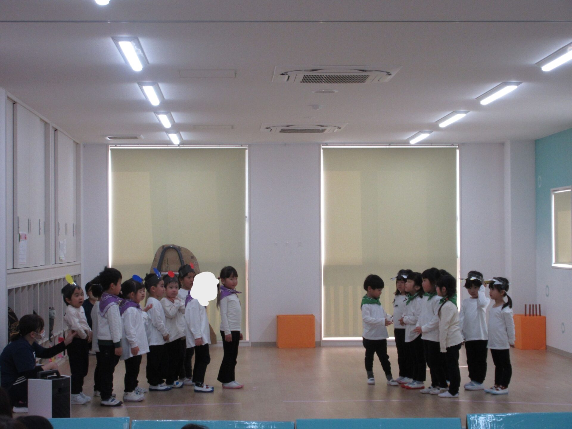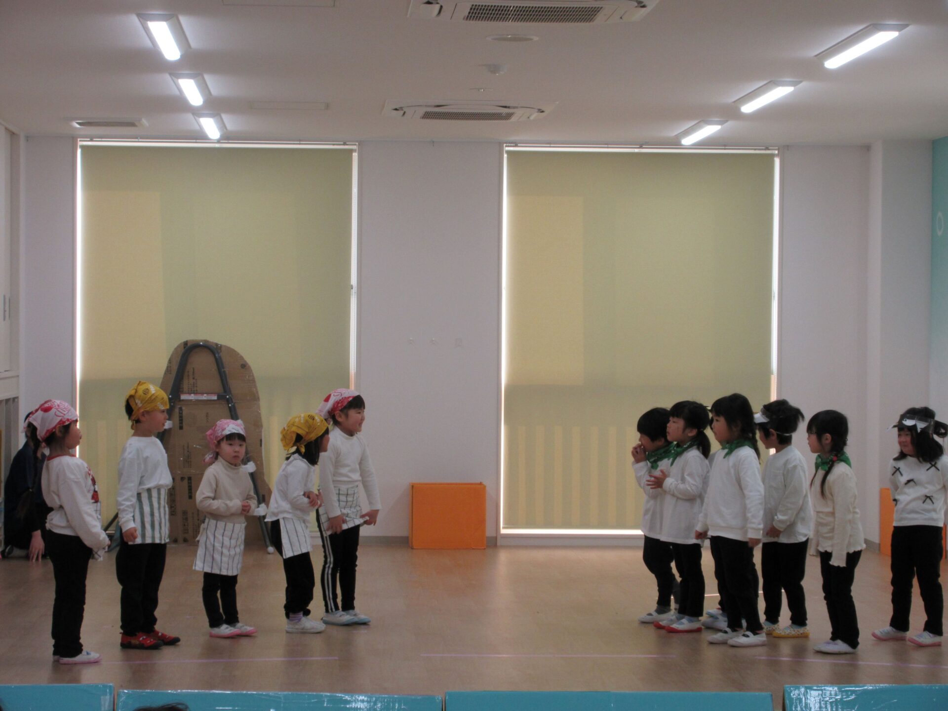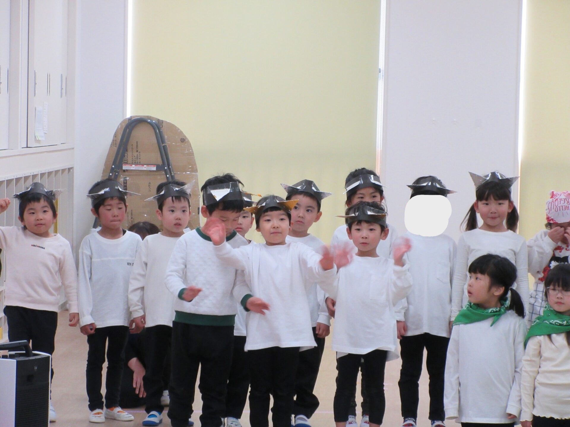 2026.03.12 お知らせ ブログ ジャックと豆の木😊(4歳そら組) ジャックと豆の木予行練習を振り返りたいと思います! 牛ダンスとっても上手にできていました🐮牛面白いと、周りの先生からも好評でした♡ 不思議なおじさん、豆を交換しないかい❔上手にできていました 豆ダンス!本当に伸びているみたいですね(^^) 豆の木を登っています。てっぺんまで登るぞ! 👹鬼の親分の登場です!怖かったですね(笑) めんどり、金の卵産んでくれました お母さん、斧を持ってエーイと切ってくれました😊 鬼の親分👹 ジャック! お母さん😊 とっても上手にできました。そら組さんもあと1ヶ月、これからも楽しい思い出を作っていきたいと思います♡ 一覧へ戻る