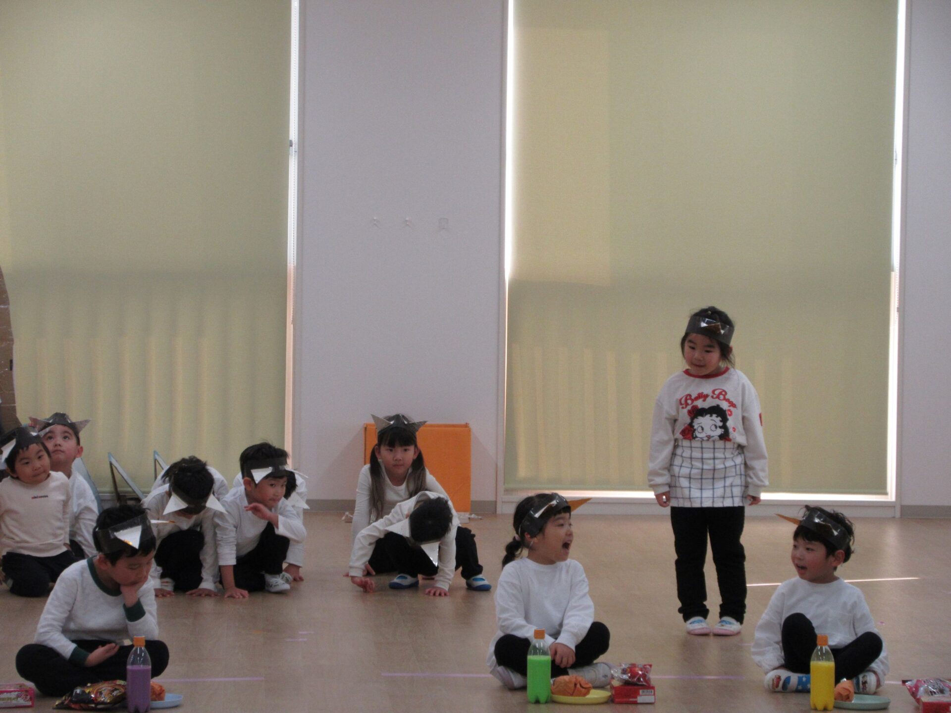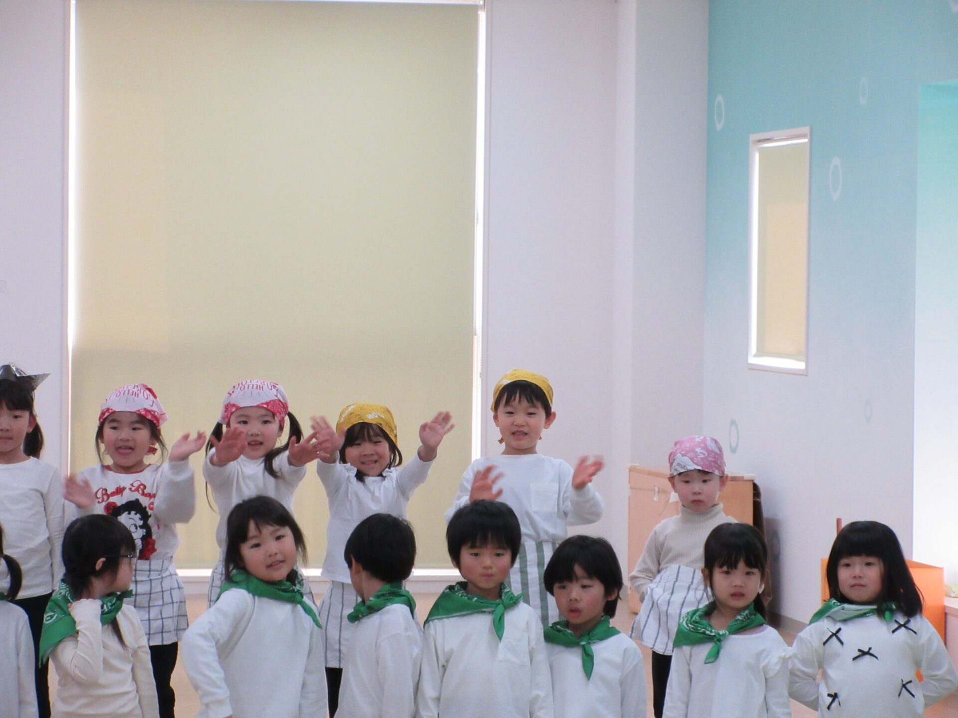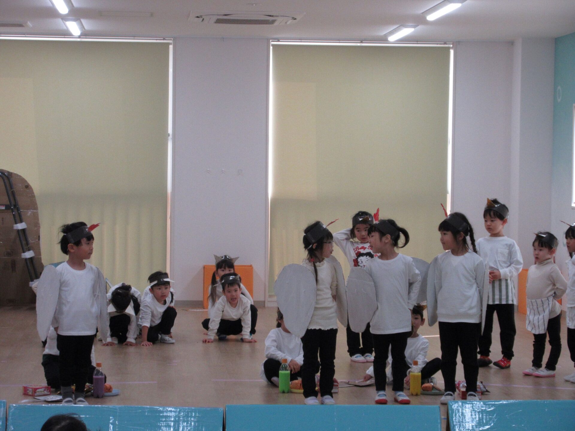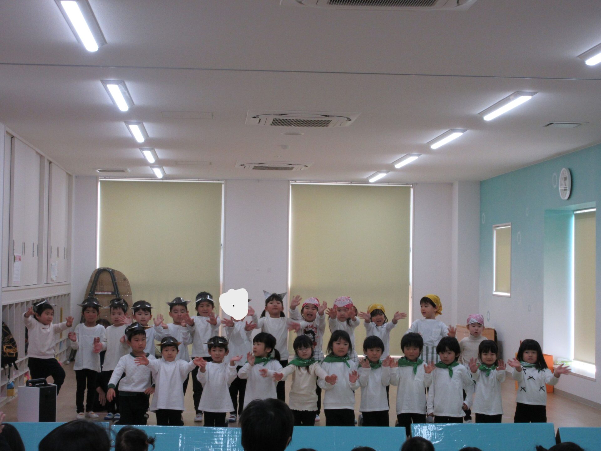 2026.03.12 お知らせ ブログ ジャックと豆の木😊(4歳そら組) ジャックと豆の木予行練習を振り返りたいと思います! 牛ダンスとっても上手にできていました🐮牛面白いと、周りの先生からも好評でした♡ 不思議なおじさん、豆を交換しないかい❔上手にできていました 豆ダンス!本当に伸びているみたいですね(^^) 豆の木を登っています。てっぺんまで登るぞ! 👹鬼の親分の登場です!怖かったですね(笑) めんどり、金の卵産んでくれました お母さん、斧を持ってエーイと切ってくれました😊 鬼の親分👹 ジャック! お母さん😊 とっても上手にできました。そら組さんもあと1ヶ月、これからも楽しい思い出を作っていきたいと思います♡ 一覧へ戻る