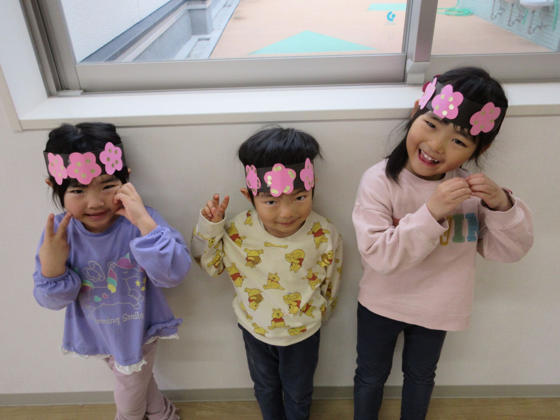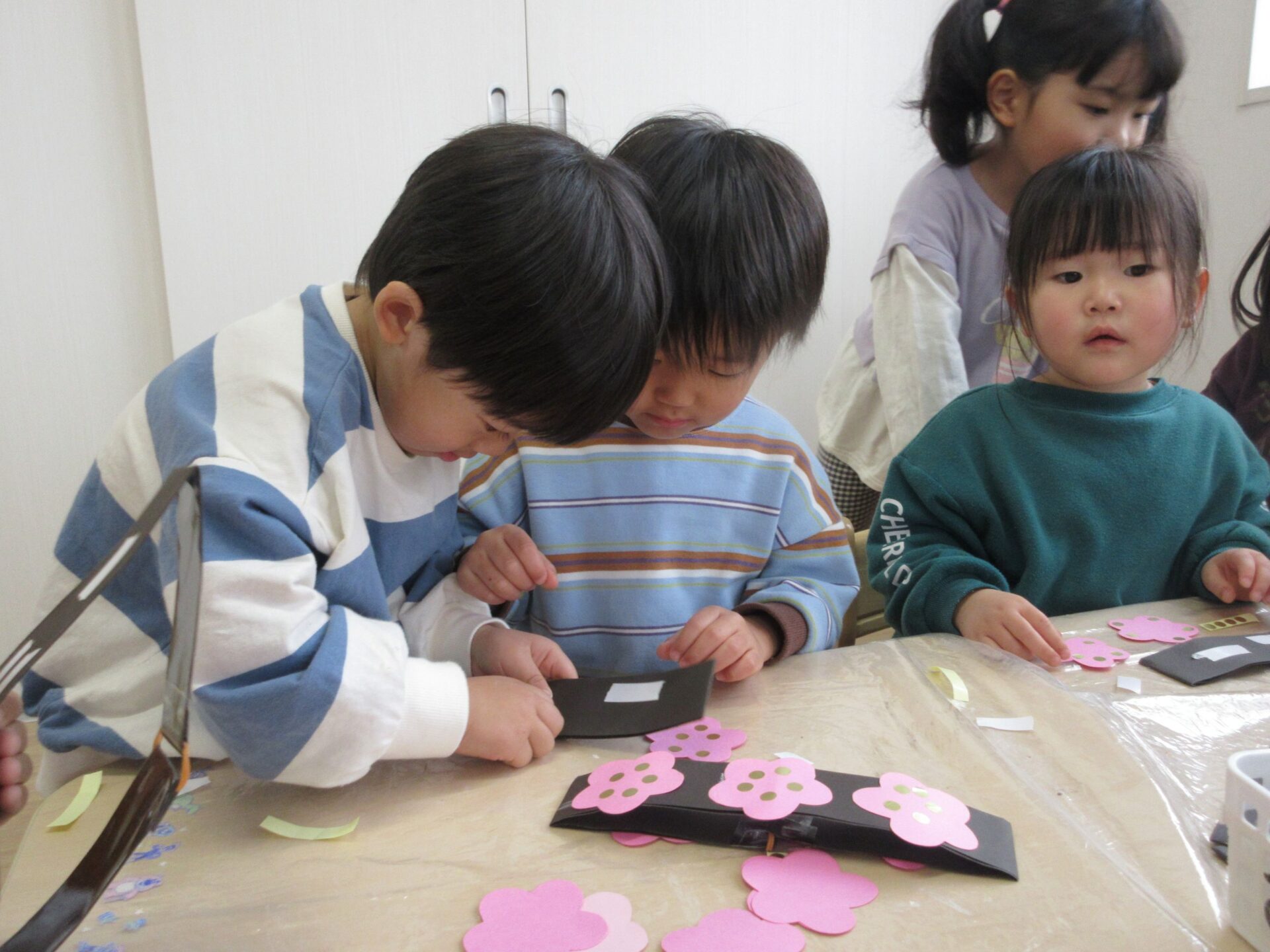 そして、みんなで可愛い桃の花のお面を作りましたよ🌸