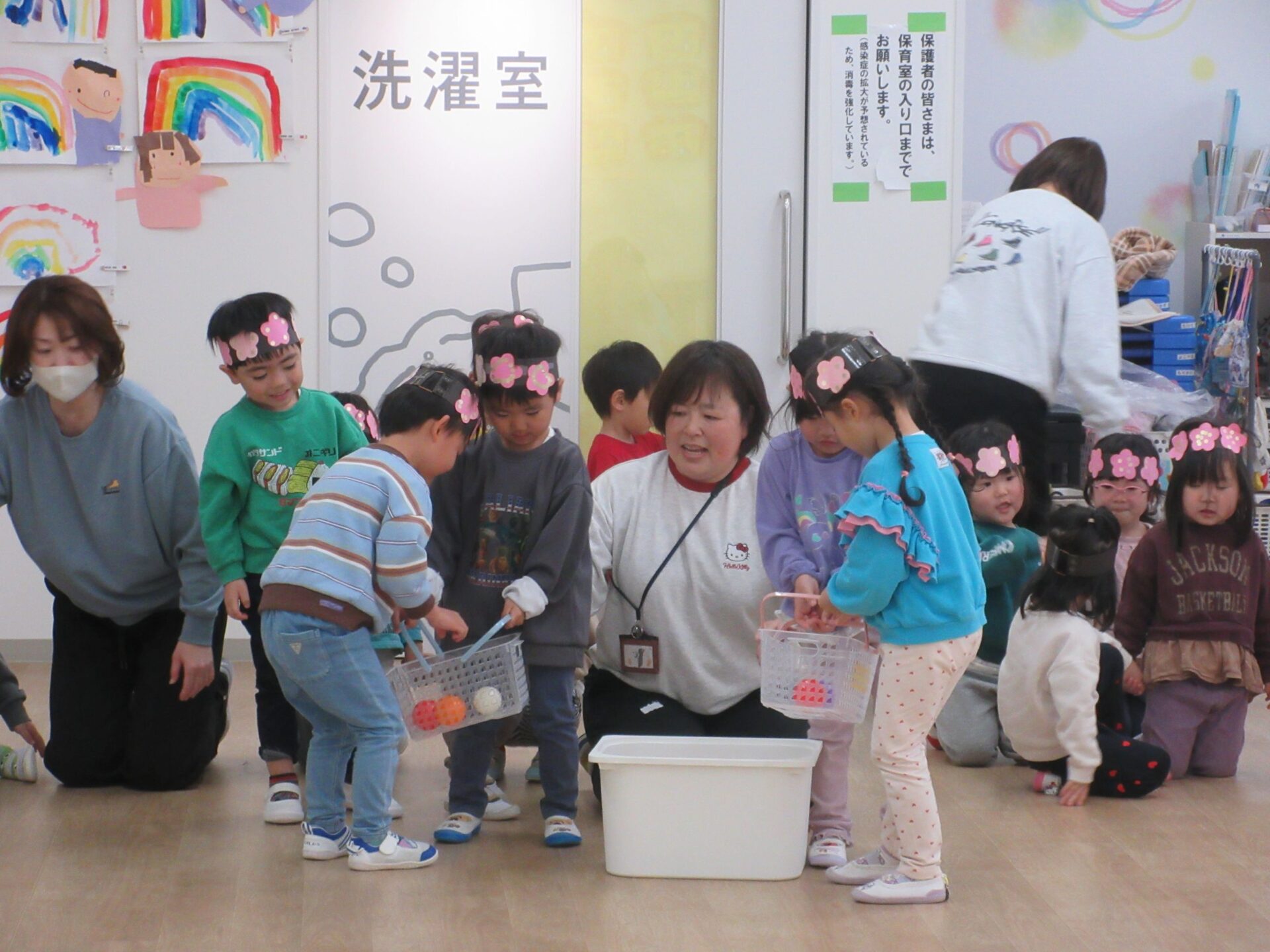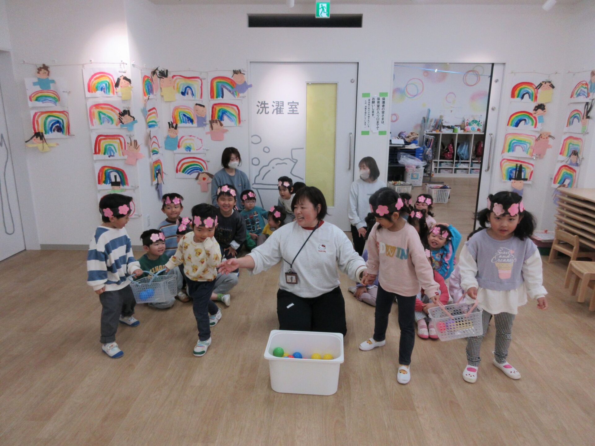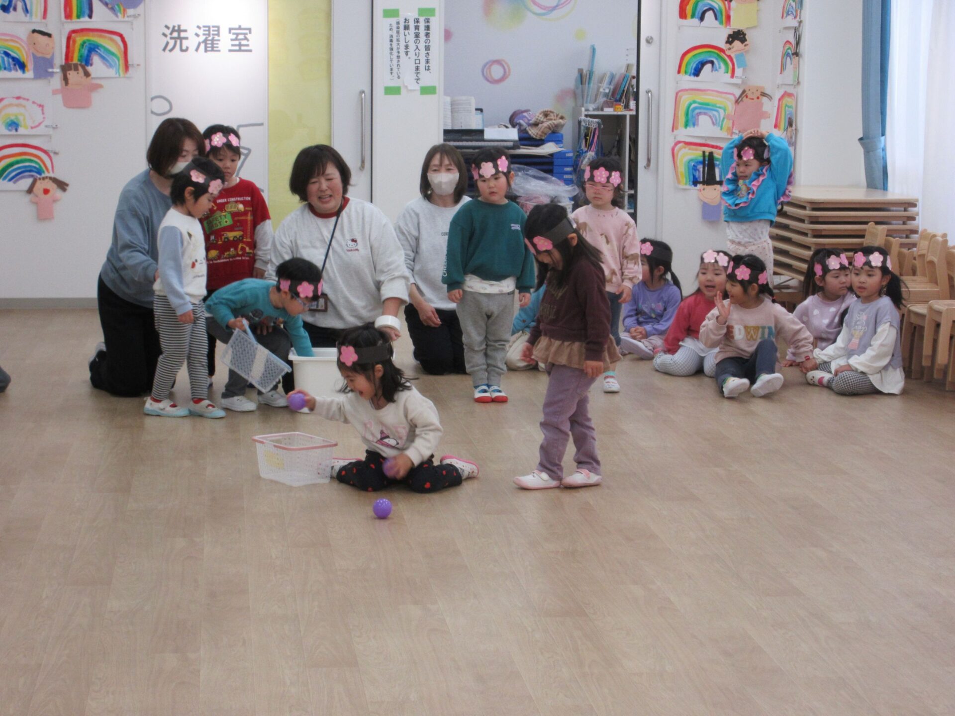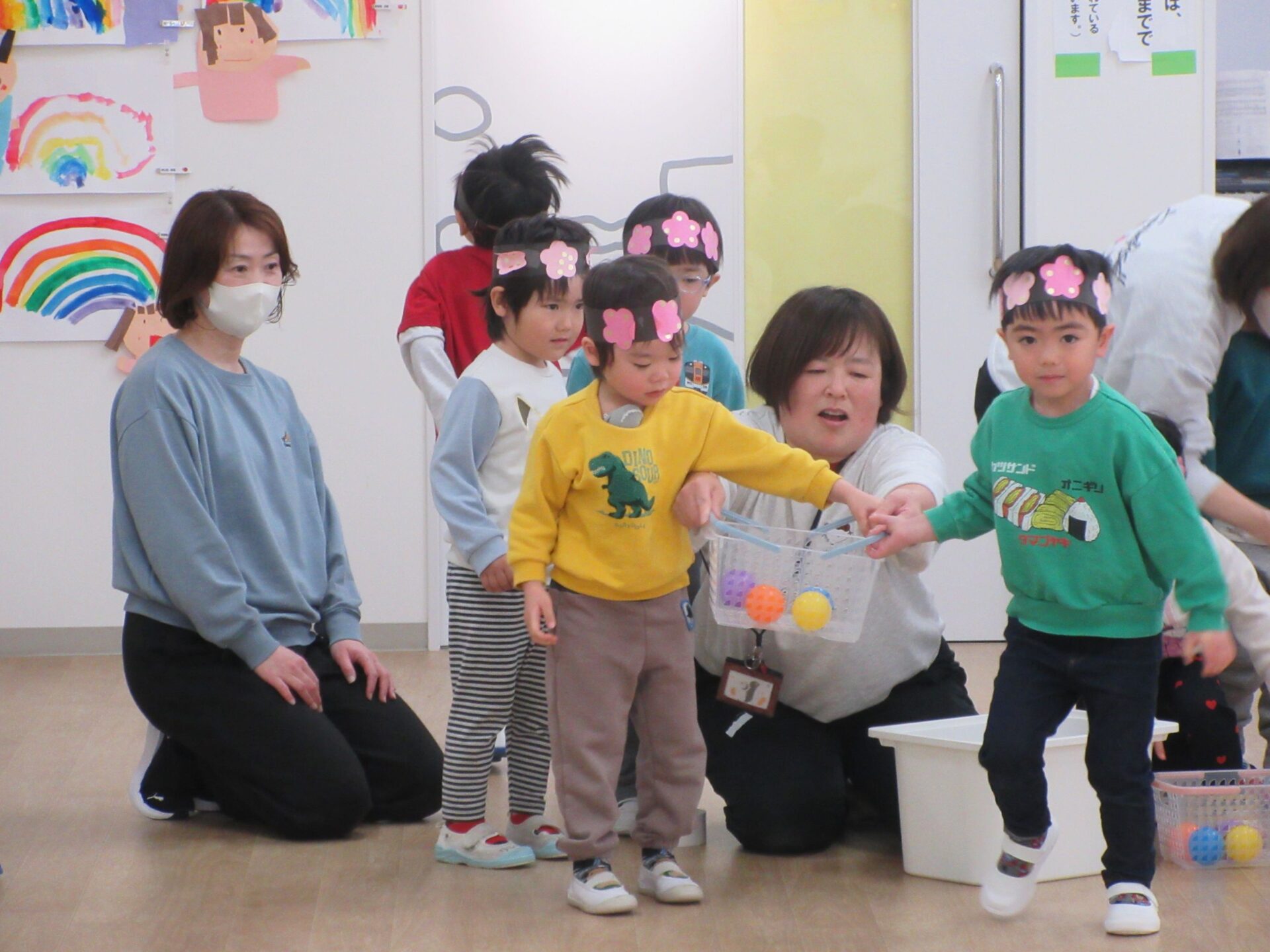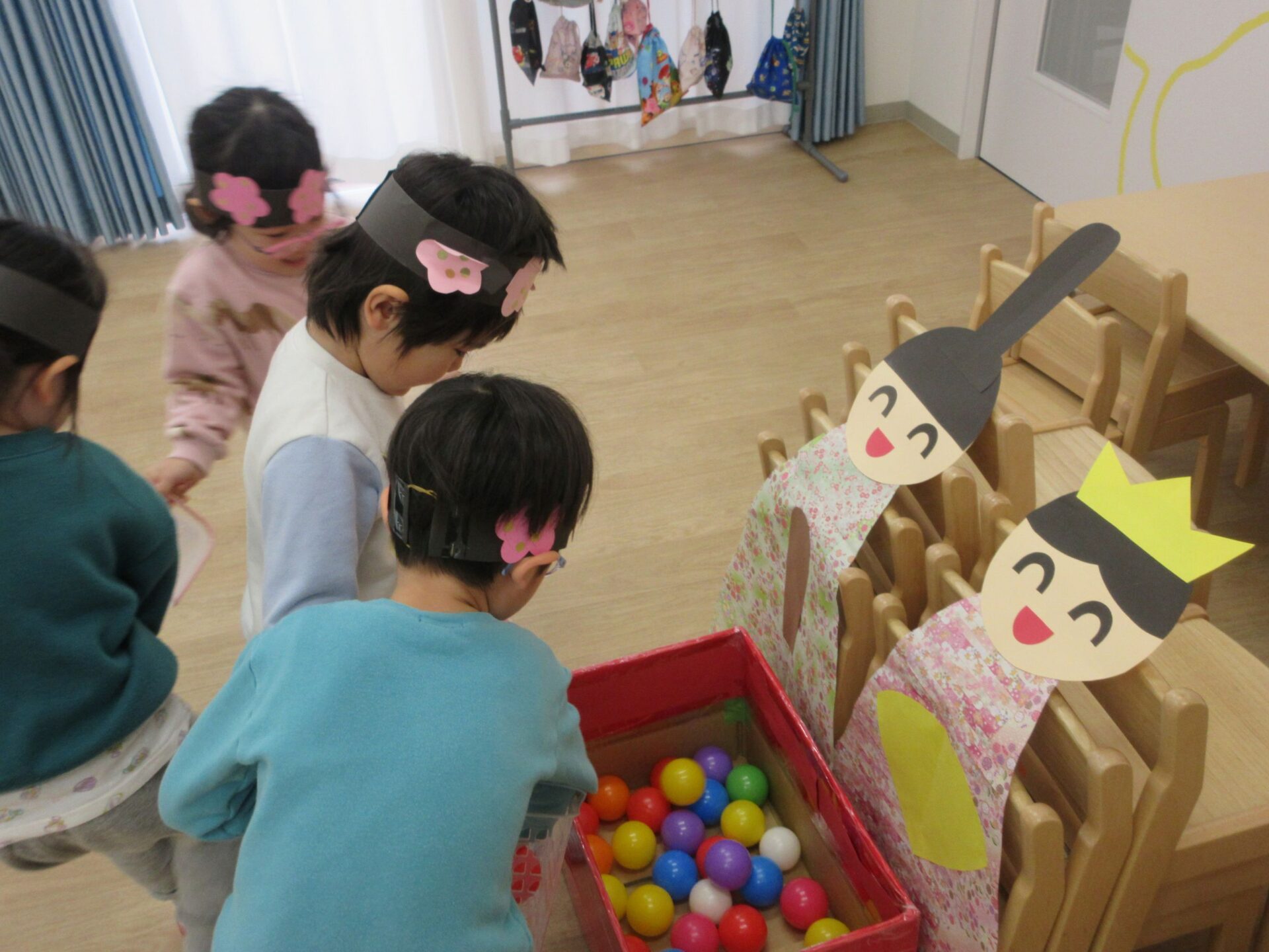 かごにボールを入れて、お雛様お内裏様のもとへ運びます!
