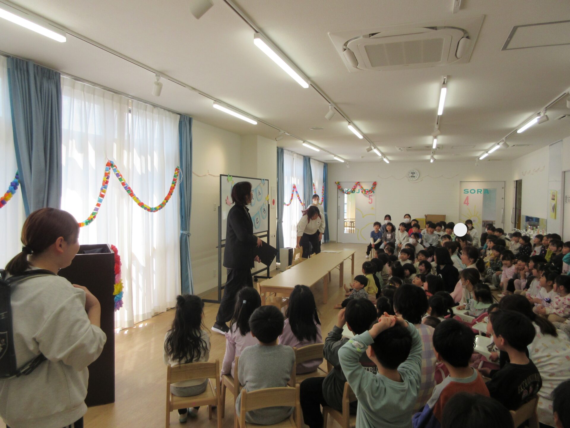次は、先生たちからのプレゼント、「小学校ってどんなところ?」の劇がありました(‘ω’)ノ