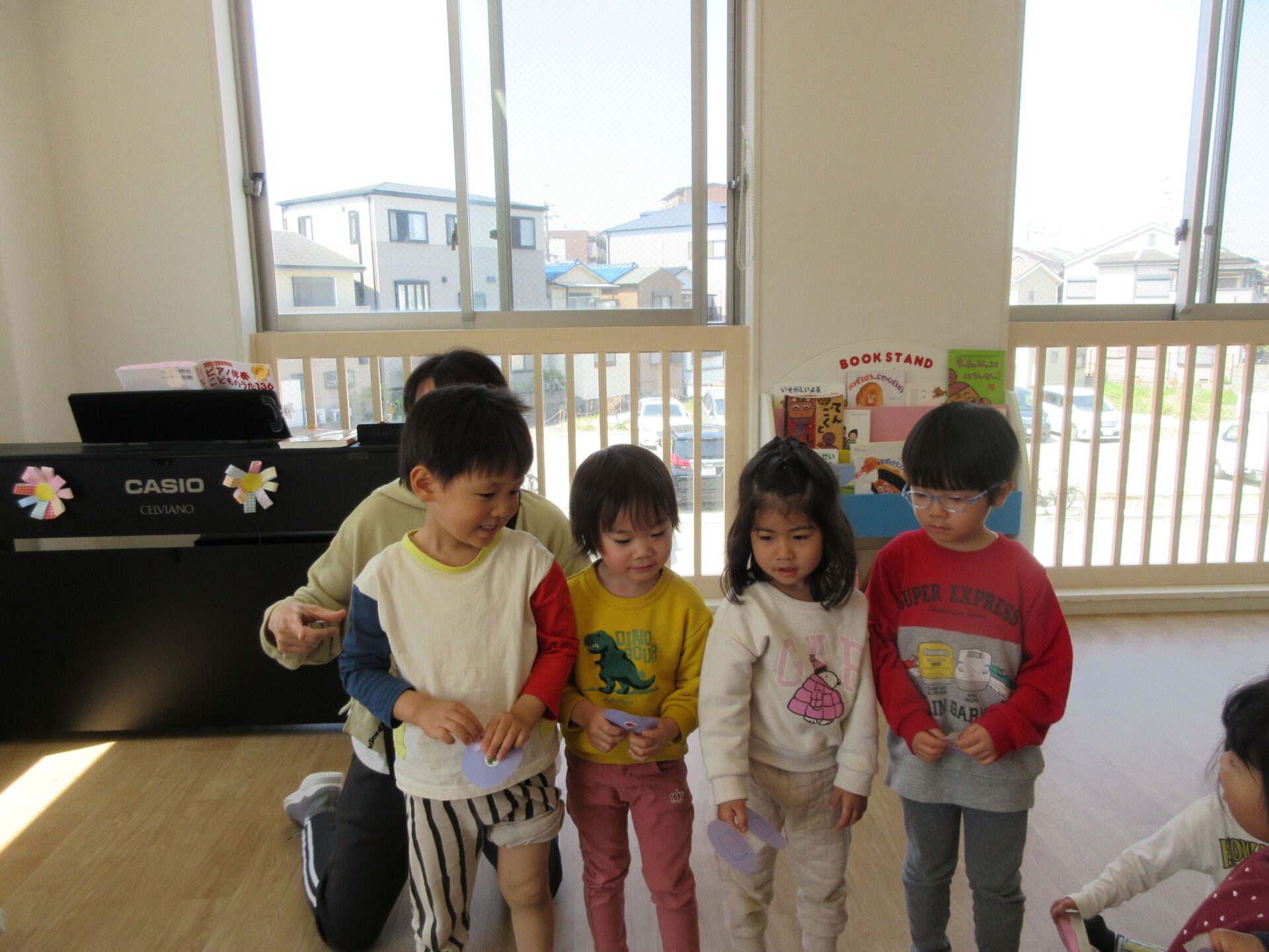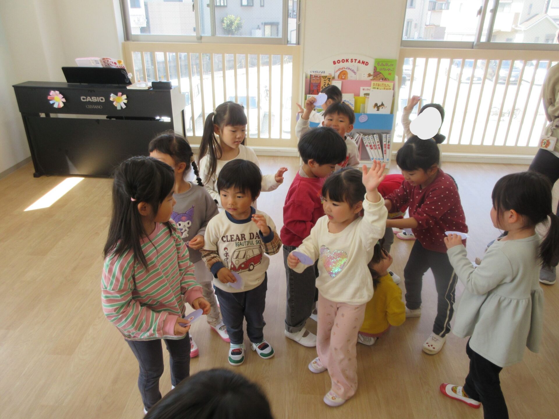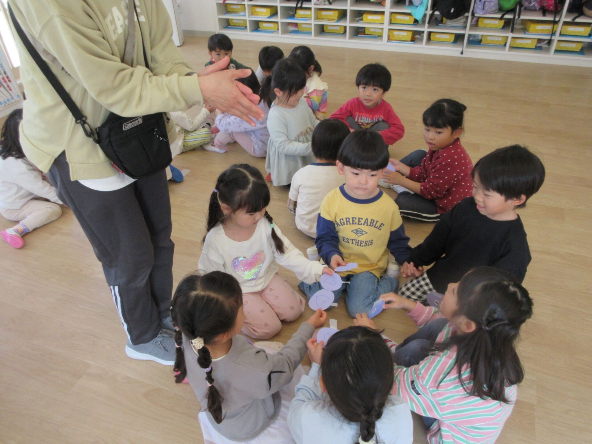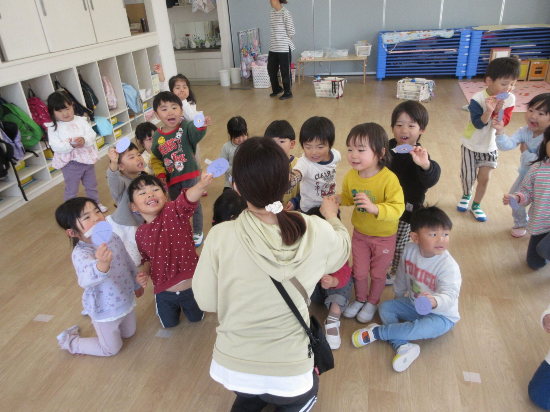 「〇の人~」などと自分たちで声を掛け合いながら、同じマークのお友だちを探していましたよ♬