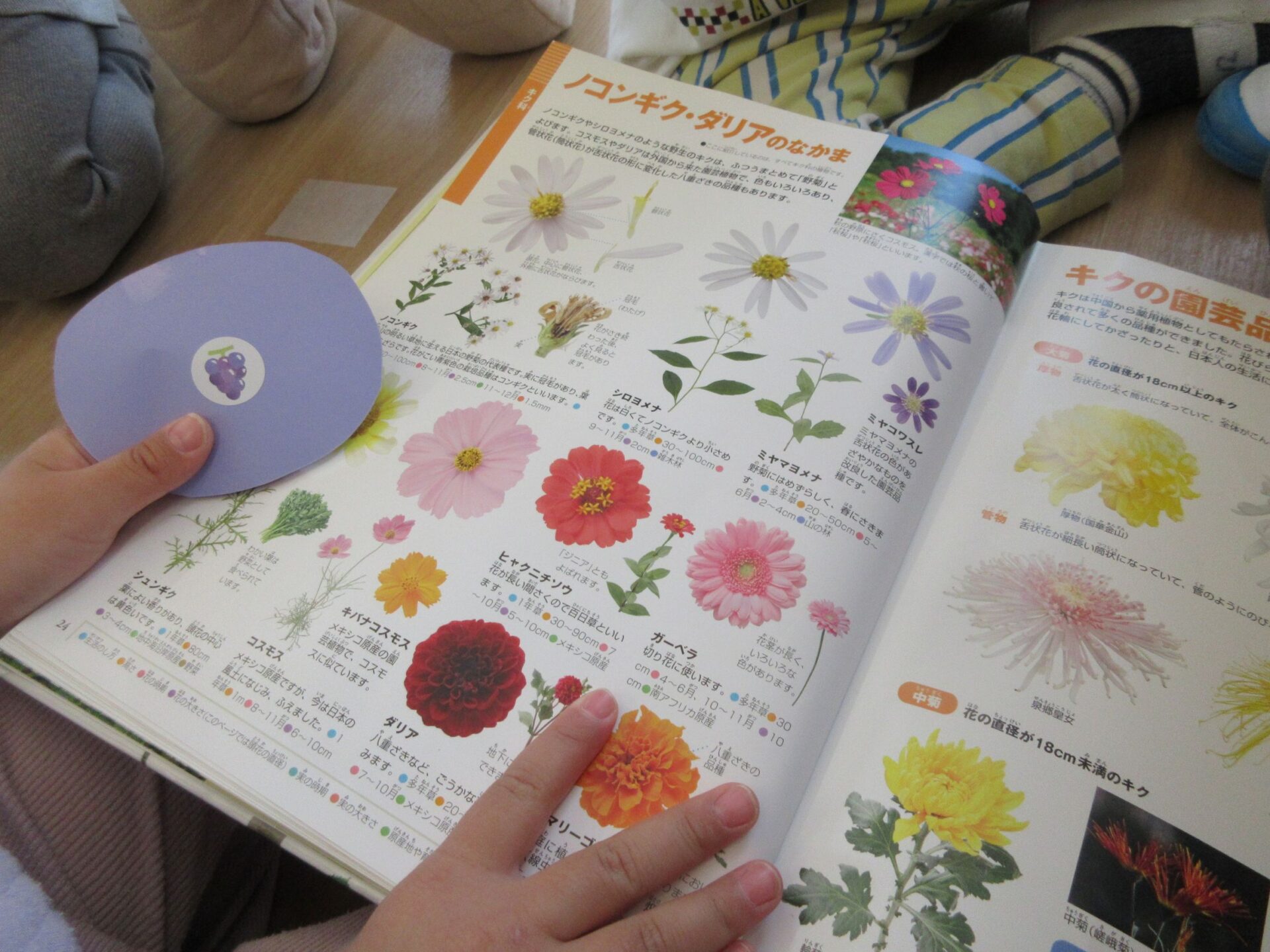 今回は「花の名前」にしようとクラス全体で決め、図鑑を見て「これにしようかな??」と、お友だち同士で相談していましたよ(^^)/